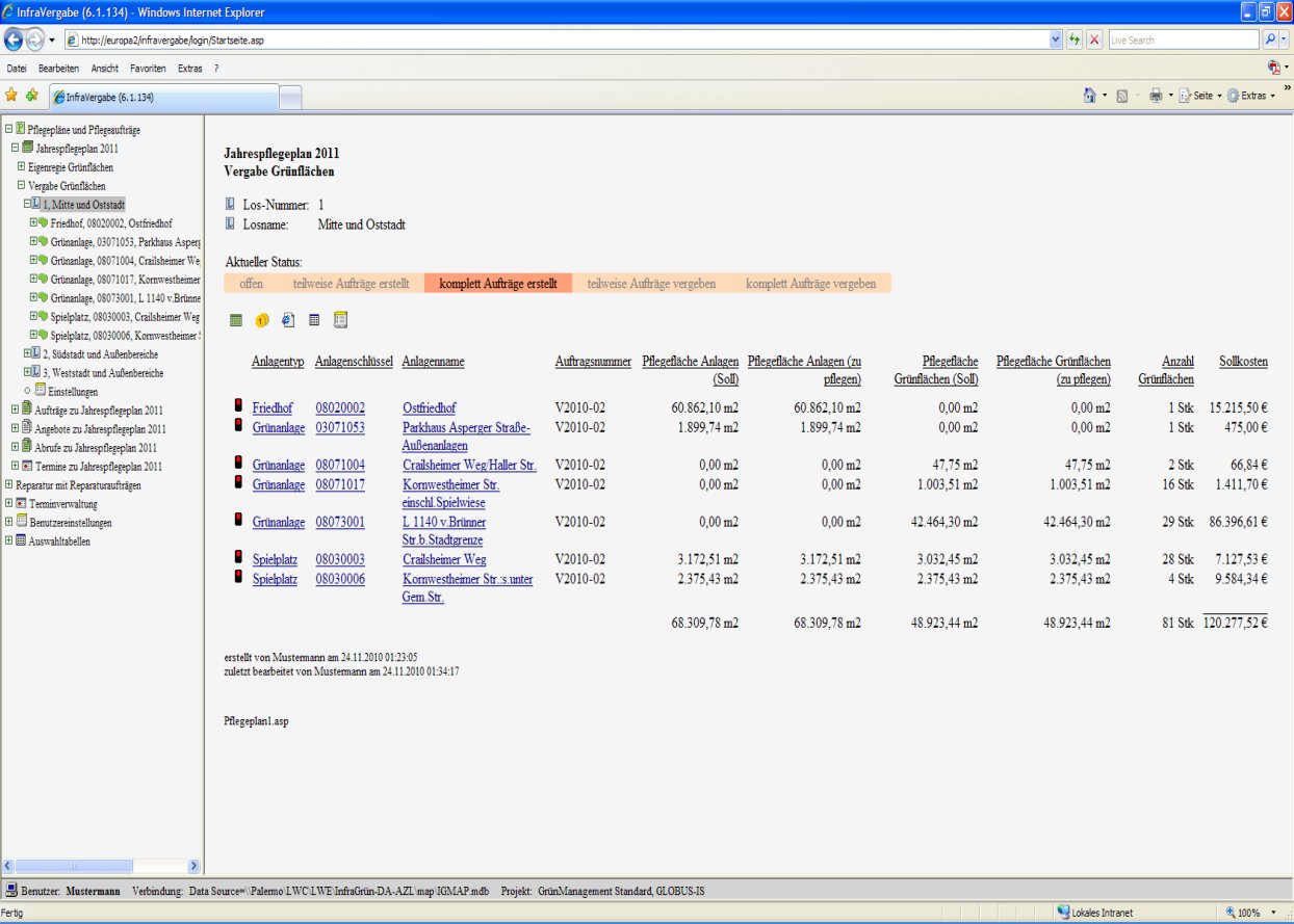 Pflegeplan für Grünflächenpflege - Plan, hier gegliedert nach Losen und Anlagen |