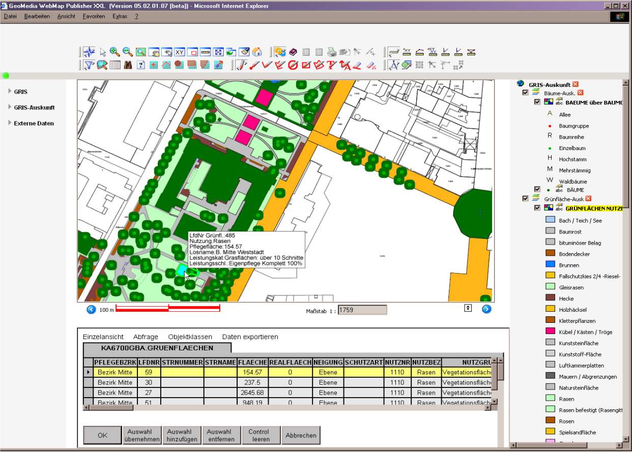 Karten- und Sachdatenauskunft im Internet-Explorer