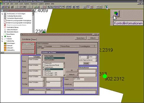 (PC), in dem die Bestanddaten zu Bäumen flächendeckend für die Gesamtstadt verwaltet werden. Der Anwender stellt mittels Abfragen oder über eine grafische Auswahl die zu kontrollierenden Bäume für einen Kontrolltrupp oder für eine Firma zusammen und spielt deren Daten sowie deren letzten Kontrollsatz dann in eine ACCESS-Kontroll-Datenbank aus. Ebenfalls ausgespielt wird eine Hintergrundkarte.