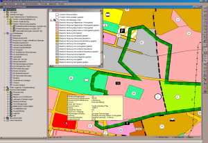 mittels freier SQL-Recherchen, Grafikrecherchen sowie Listen-, Formular-, Diagrammausgabe.GIS-Analysen wie Flächenverschneiden, Nachbarschaften, Pufferzonen |